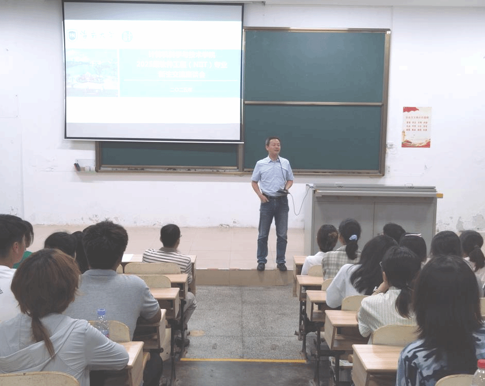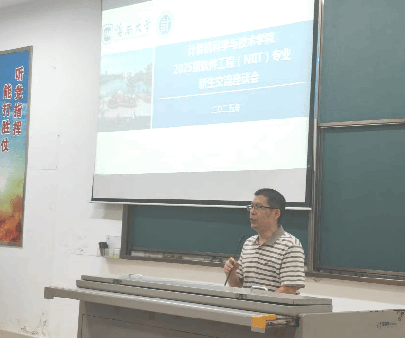 随后,教学委员会主任唐朝胜围绕软件工程(NIIT)专业展开详细宣讲。他从专业基本情况、课程体系、师资队伍及建设成效四大维度进行介绍,让新生对专业架构、学习内容、师资实力及发展成果有了全面且清晰的认知,为新生搭建起专业认知的初步框架。