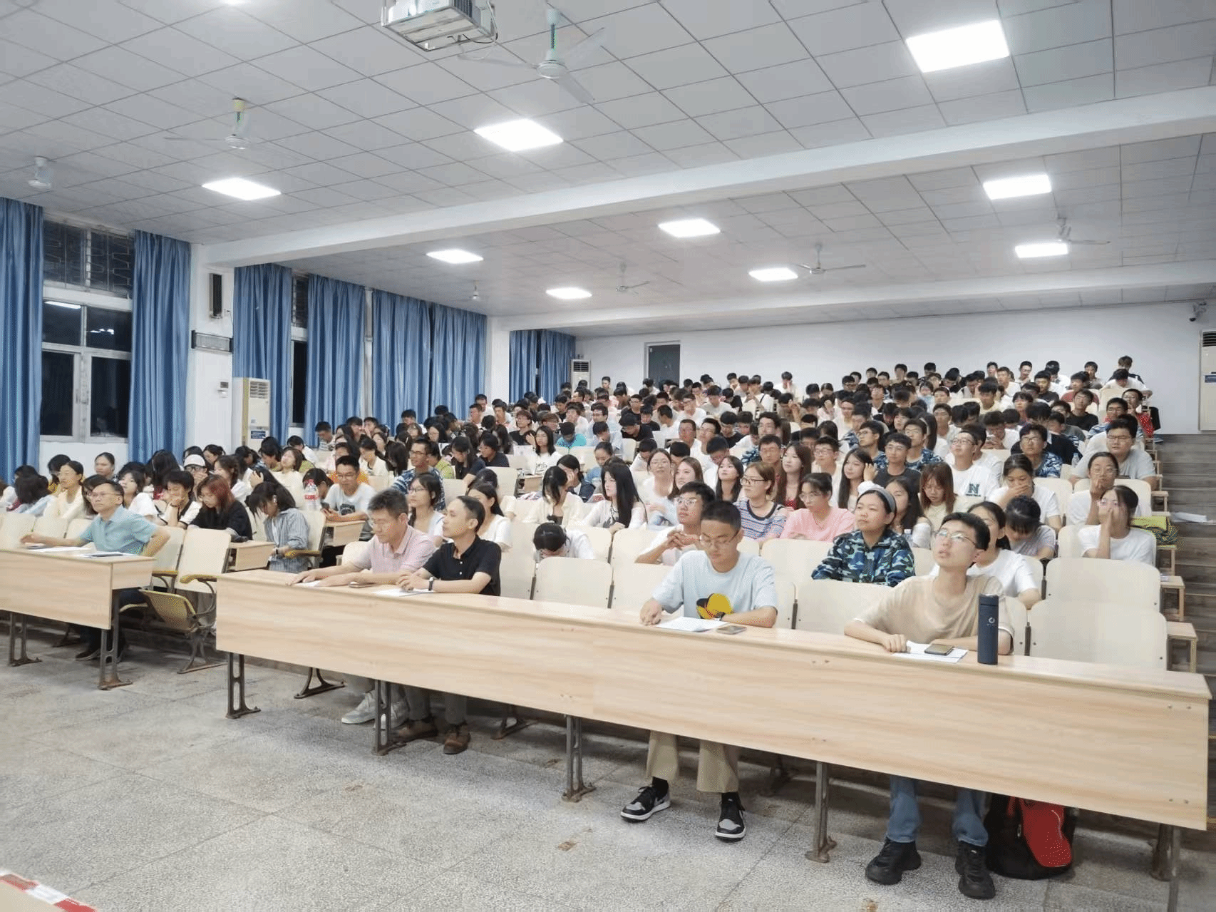 学生代表的经验分享环节。研究生袁宇鹏结合自身科研经历,讲解了如何平衡课程学习与科研探索,建议有深造意向的新生尽早接触科研项目;本科生李润庭以“目标”与“主动”为关键词,分享了自己从确定保研目标到加入课题组、发表科研论文的历程,提醒新生主动规划未来、积极争取资源,无论是就业、考研还是保研,都需提前做好准备。