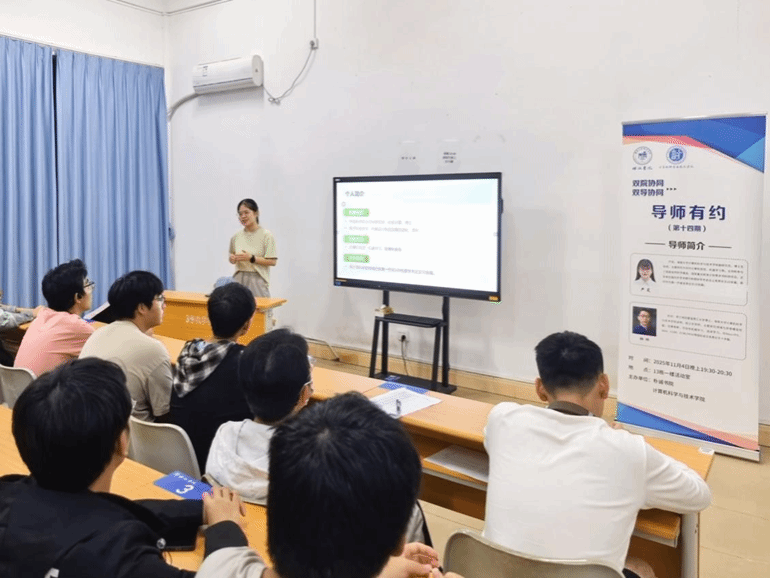 杜欣为同学们作了一场生动的学术报告,聚焦可信性机器学习的理论方法研究核心,以通俗生动的阐释,深入解析不确定性估计、因果推断等关键方向,引导新生拓展学术视野、培养专业兴趣。